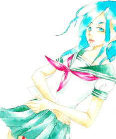 先日更新した「月影の少女」と対っぽいのは単に、パレットに残っていた色がその時のままだったからです。