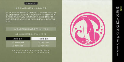 (コカコーラの「綾鷹」というお茶のサイトで、名前を入力するとオリジナル家紋を作ってくれるのです。コンテンツ“FUN”からどうぞ)