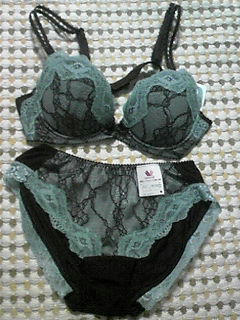 写真じゃわかりづらいけど茶色ベースに水色レースです。